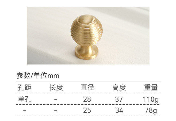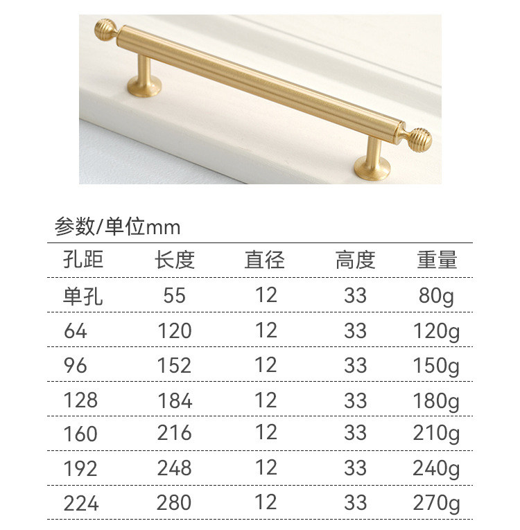 Kwoor/葵窝轻奢黄铜实心橱柜柜门拉手法式创意家具抽屉门衣柜把手